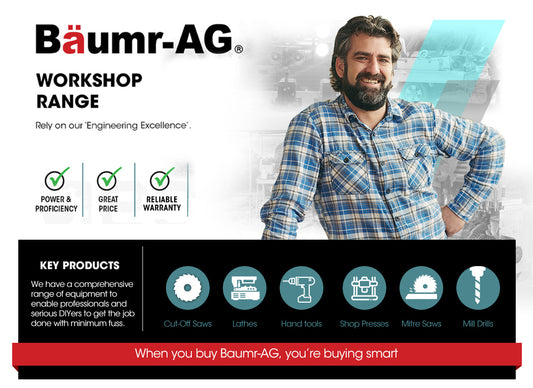 Baumr-AG The Brand Aussie tradies, DIYers, and construction workers swear by Baumr – a brand known for its reliability and extensive product range, available at Factory Direct Shop. Whether you're tackling a major building project or a weekend reno, Baumr has the tools to get the job done. Need to mix concrete for a new patio? Look no further than their portable cement mixers. For those cutting tile or stone, Baumr offers powerful wet cutting saws. But that's not all! Their selection caters to woodworking enthusiasts with scroll saws and wood lathes, while demolition jobs are a breeze with jackhammers and core drills. Baumr doesn't stop there – they have compound saws for precise cuts, metal lathes for shaping steel components, and even motorized wheelbarrows to save you time and energy. So, next time you're on the hunt for top-notch tools, look for Baumr at Factory Direct Shop. They're the one-stop shop for getting any Aussie project, big or small, completed efficiently and to a high standard.