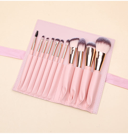 Style A 12-Piece Mini Portable Makeup Brush Set - Fiber Bristle Beauty Tool Set(With storage bag)