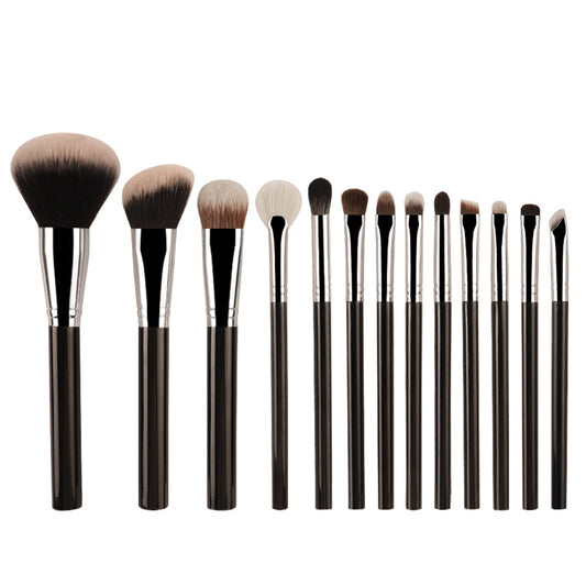 Gray 12-Piece Professional Makeup Brush Set with Cosmetic Bag - Premium Synthetic Fiber, Wooden Handle, Aluminum Tube