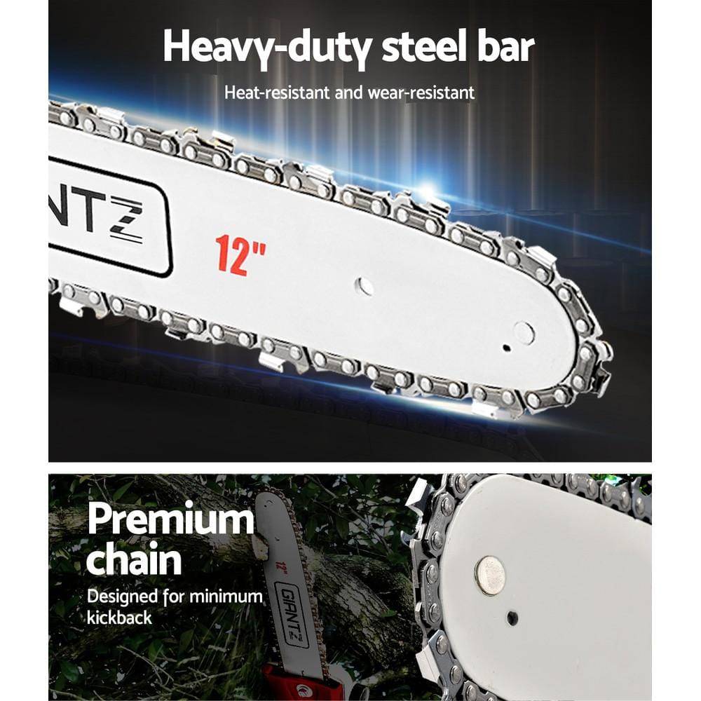 The GIANTZ 9-in-1 Pro-series Chainsaw is the answer for people who are looking for doing serious cutting and bring it to the next level. Featuring a powerful 65cc 2-stroke engine with an E-start recoil pull system, the chainsaw trims, and cuts every gardening challenge in its path with minimum hassle. Efficient and lightweight in design and equipped with a comfortable D-handle, the chainsaw allows quick-connect coupling for easy change of attachments.