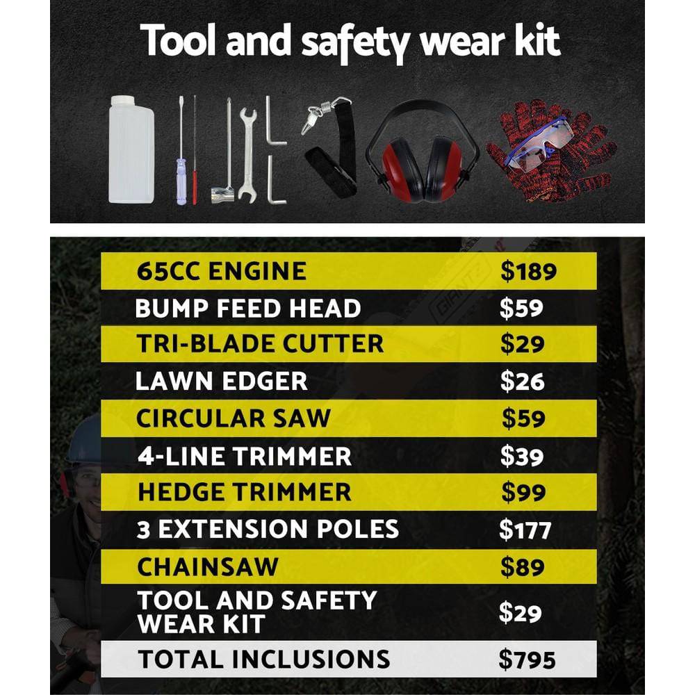 Petrol Pole Chainsaw-Hedge Trimmer-Brush Cutter-Whipper Snipper-Multi Tool-Gizantz 65CC