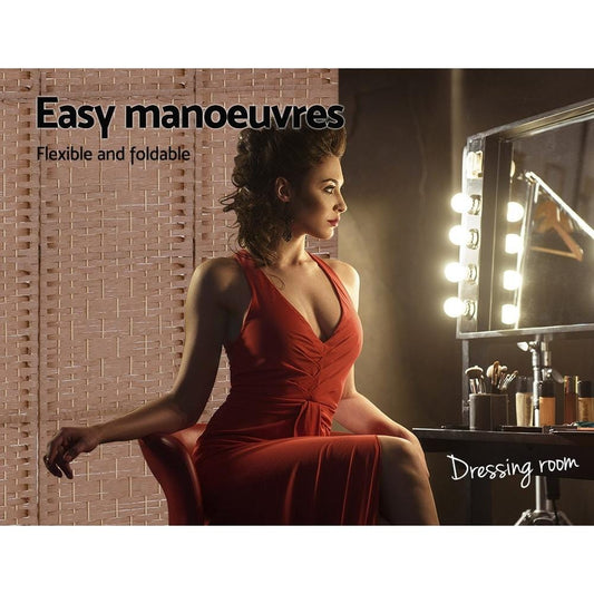 4 Panel Room Divider Screen Privacy Rattan Timber Foldable Dividers Stand Hand Woven