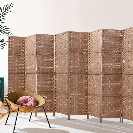 8 Panels Room Divider Screen Privacy Rattan Timber Fold Woven Stand White