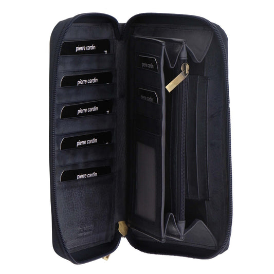 Pierre Cardin Perforated Leather Ladies Handy Travel Wallet - Black