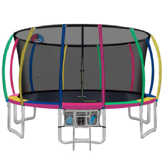Kahuna 10ft Outdoor Trampoline Kids Children With Safety Enclosure Pad Mat Ladder Basketball Hoop Set - Rainbow