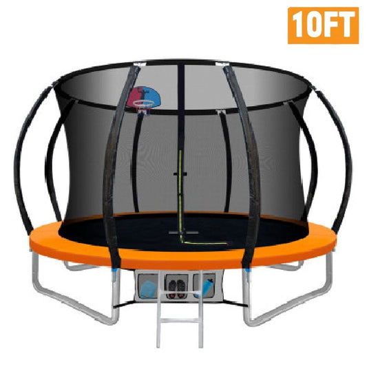 Kahuna 10ft Outdoor Trampoline Kids Children With Safety Enclosure Mat Pad Net Ladder Basketball Hoop Set - Orange
