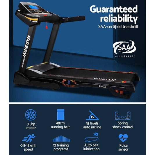 Everfit Treadmill Electric Auto Incline Home Gym Fitness Exercise Machine 490mm