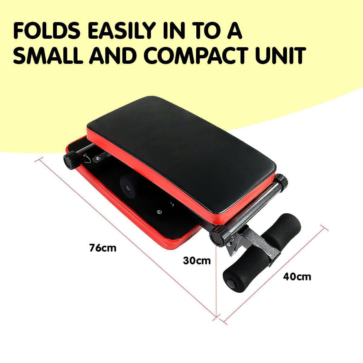 It's Like A Compact Home Gym With this NEW model steel incline sit-up bench, you can strengthen your core with sit-ups, twists, and abdominal exercises and then alternate using the resistance bands to tone up your biceps and triceps.