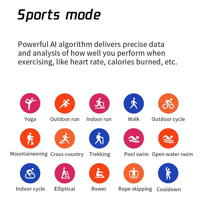 • Functions include heart rate, blood pressure, blood oxygen, sleep monitoring, and various sports modes