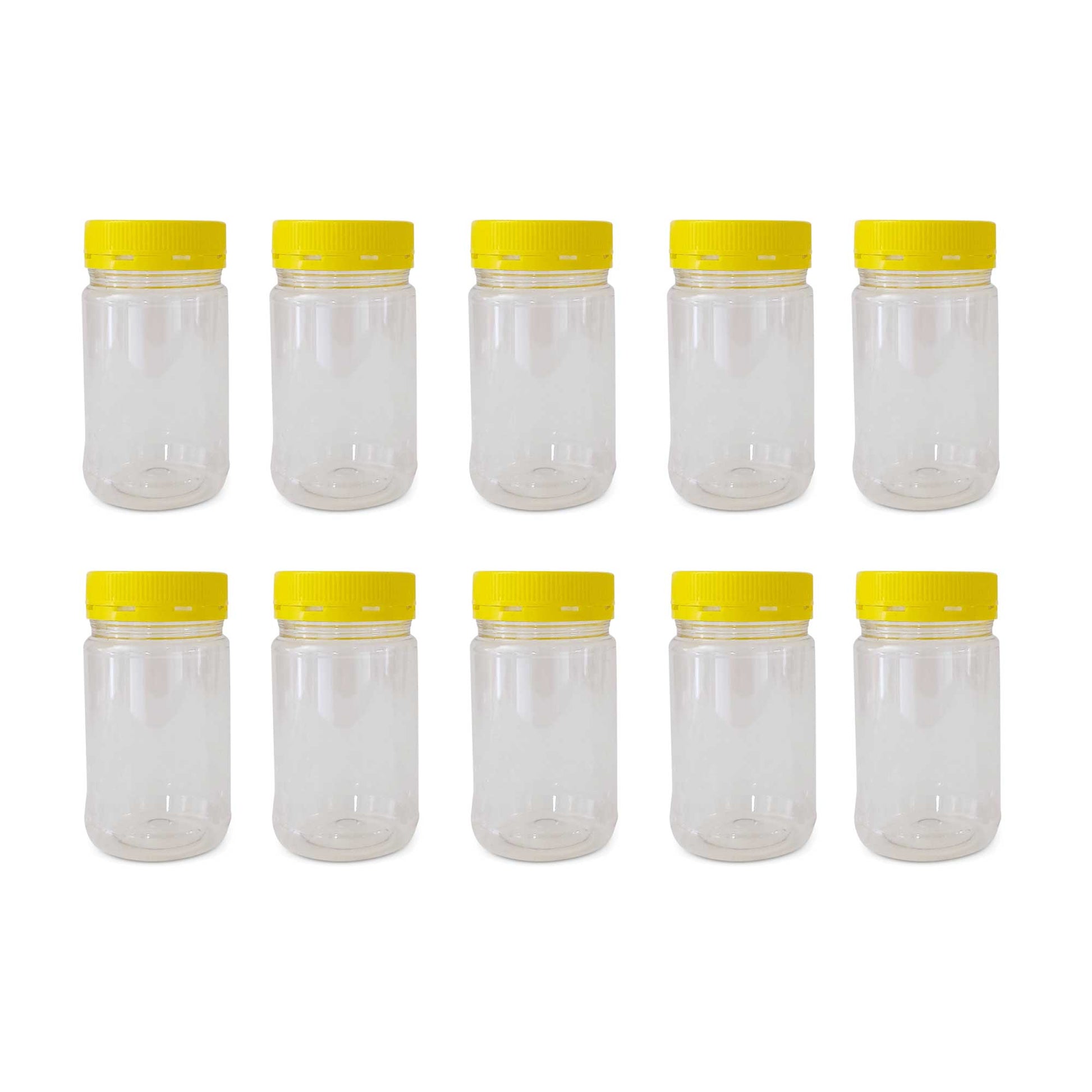 10x 500g Plastic Honey Jars + Lids - Round Clear Food Grade Packaging Containers