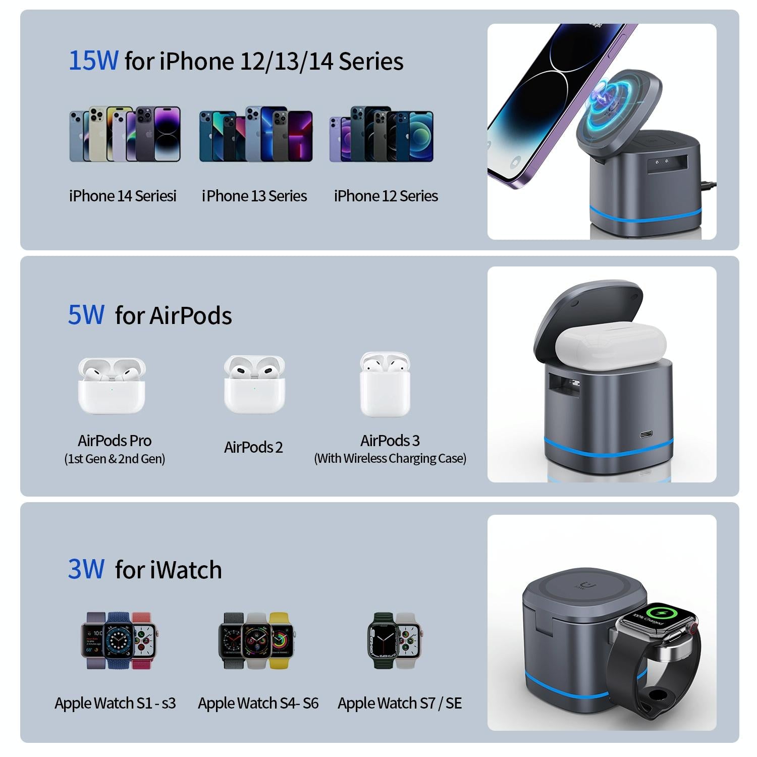 • Watch Output Power: 2.5W (Compatible with Apple Watch S1-S8)