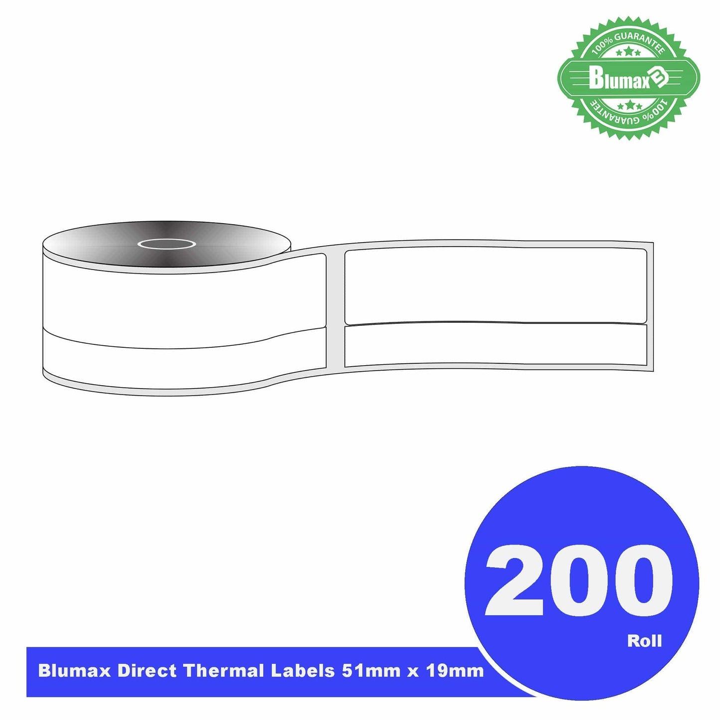 200 Rolls Blumax Direct Thermal (Zebra) 19mm x 51mm 500L White labels