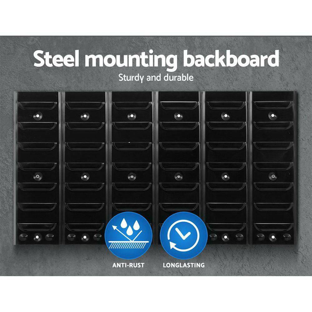 24 Bin Wall Mounted Rack Storage Tools Steel Board Organiser Work Bench Garage