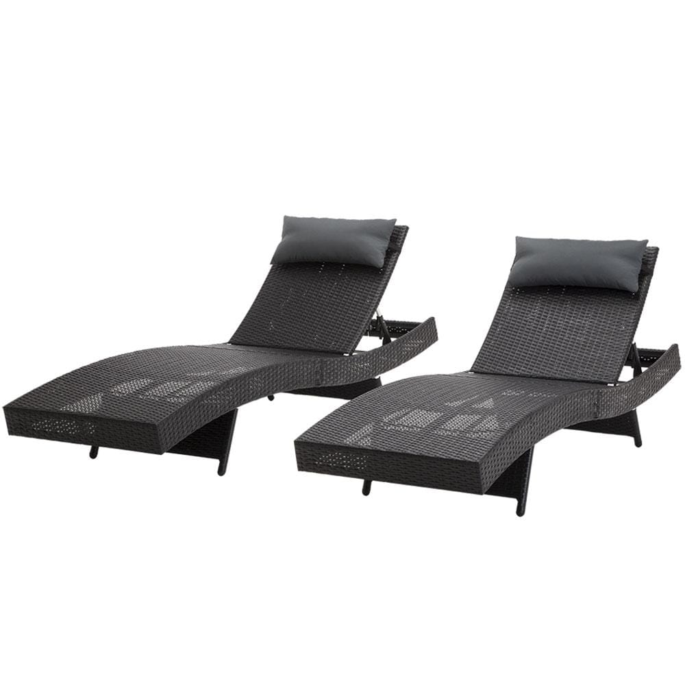2x Outdoor Sun Lounge Setting Wicker Lounger Day Bed Rattan Patio Furniture Black