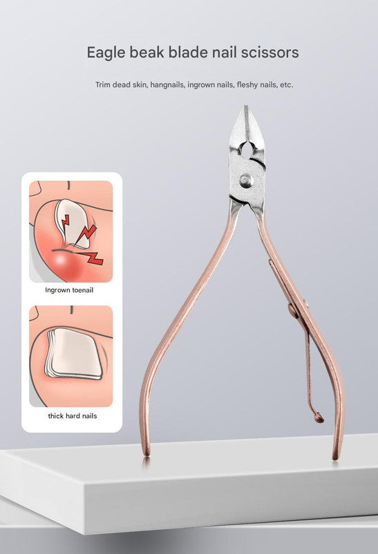 - Precision Crafted Tools: Nail clippers feature sharp, double-ground curved cutting edges for clean cuts. Eagle-beak pliers designed for tough nails and dead skin.