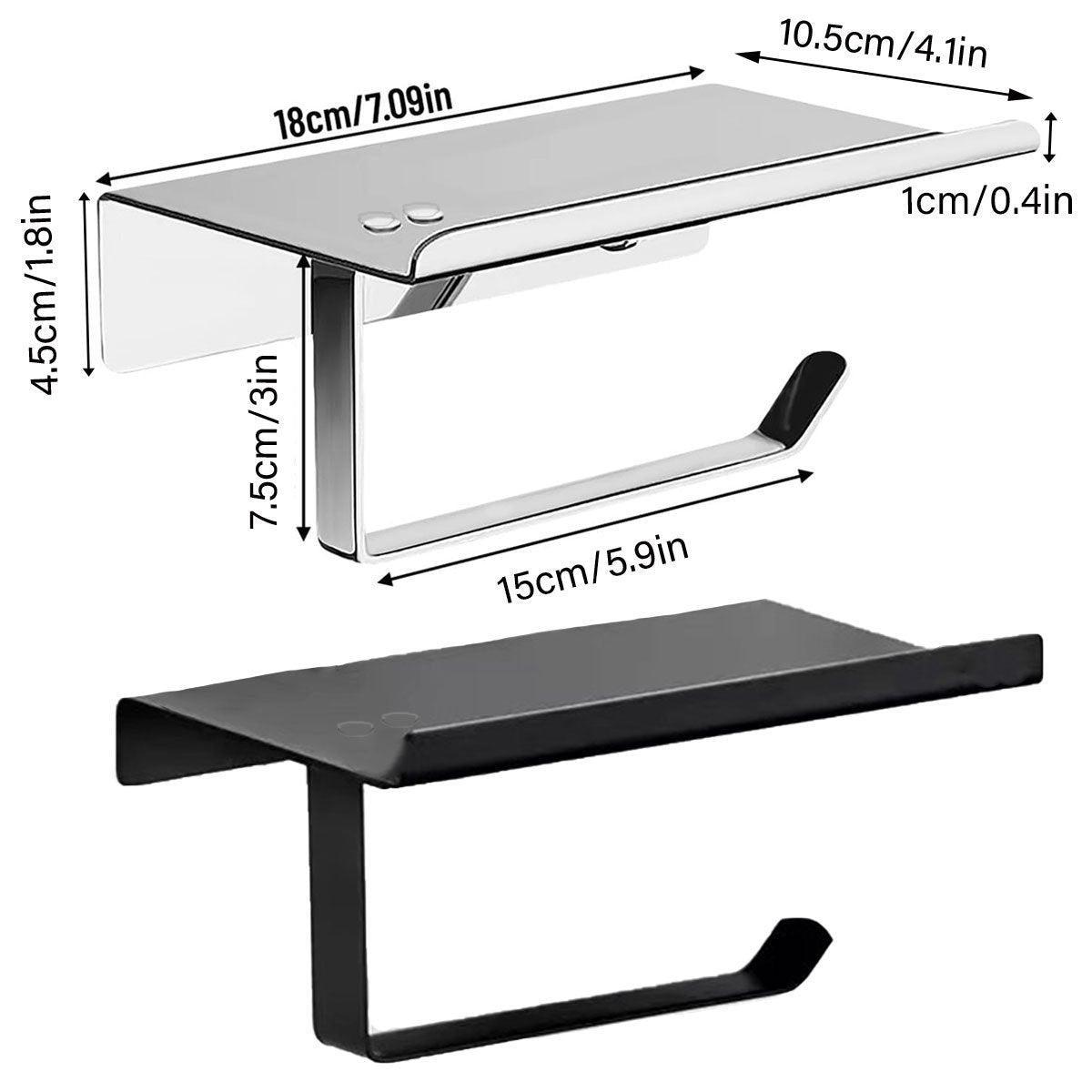 Upgrade your bathroom with this stylish and functional toilet paper holder, crafted from durable 304 stainless steel for long-lasting use. Its non-perforated design allows easy installation without drilling, perfect for renters or those wanting a clean setup. The holder features a built-in phone rack, providing extra storage space for small essentials like phones, keys, or even decor items. With a waterproof and moisture-proof surface, this holder is built to withstand humid environments, ensuring it maintains its sleek appearance over time. The smooth, rounded corners add safety, making it suitable for all bathrooms.