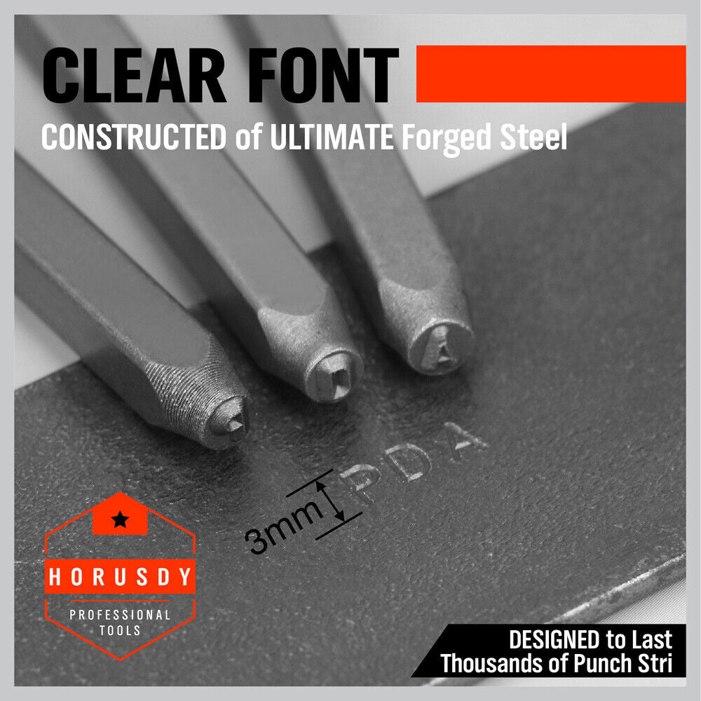 This 37-piece DIY stamp punch set features hardened ball bearing steel construction, ensuring long-lasting durability and precise impressions. With 3mm characters, it allows clear stamping of letters and numbers on various materials, ideal for detailed marking and customization in professional projects.