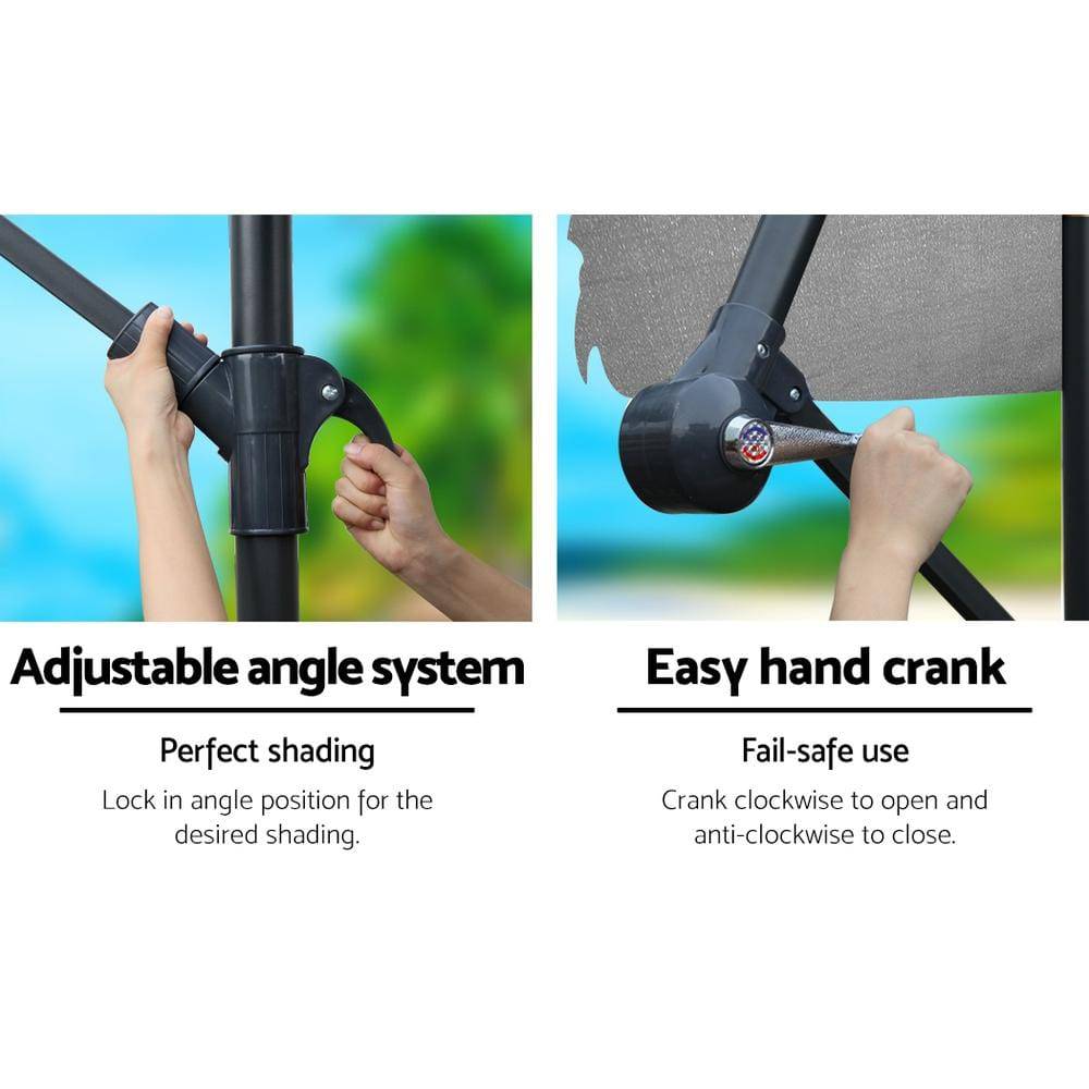 3M Umbrella with 48x48cm Base Outdoor Umbrellas Cantilever Sun Beach Garden Patio Grey