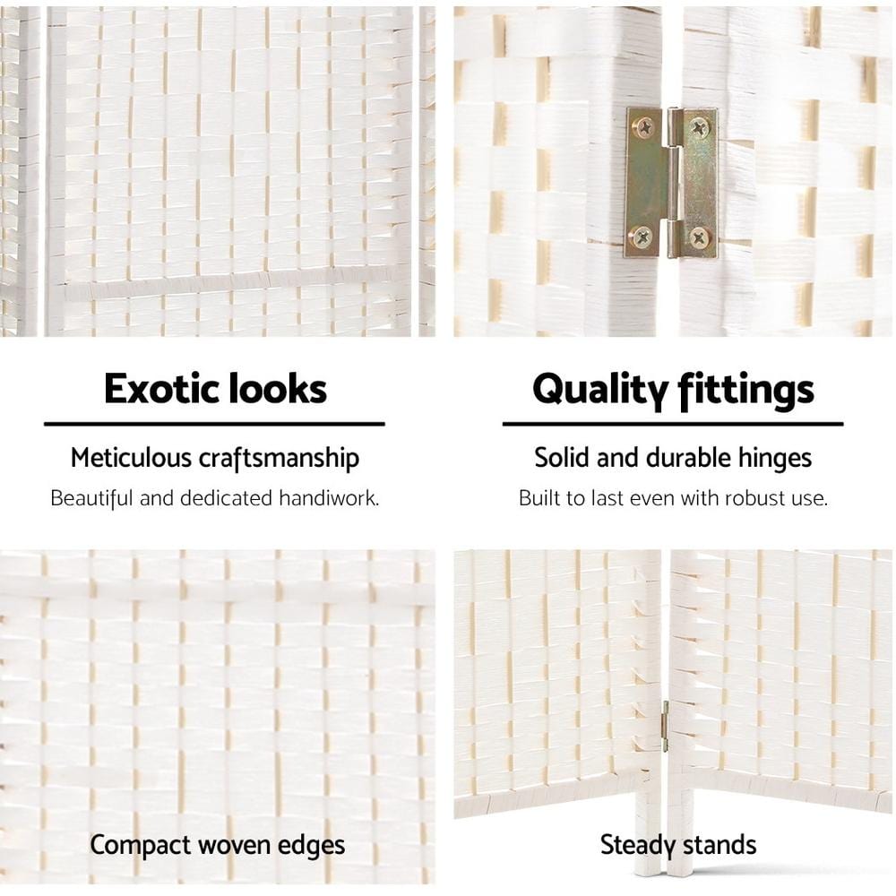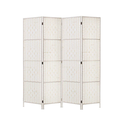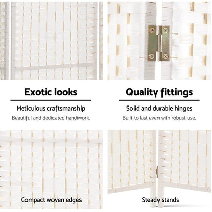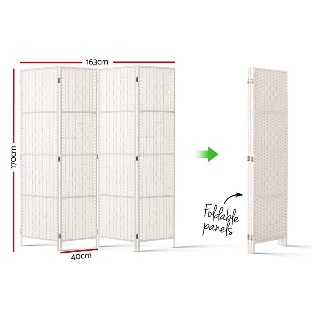 4 Panels Room Divider Screen Privacy Rattan Timber Fold Woven Stand White
