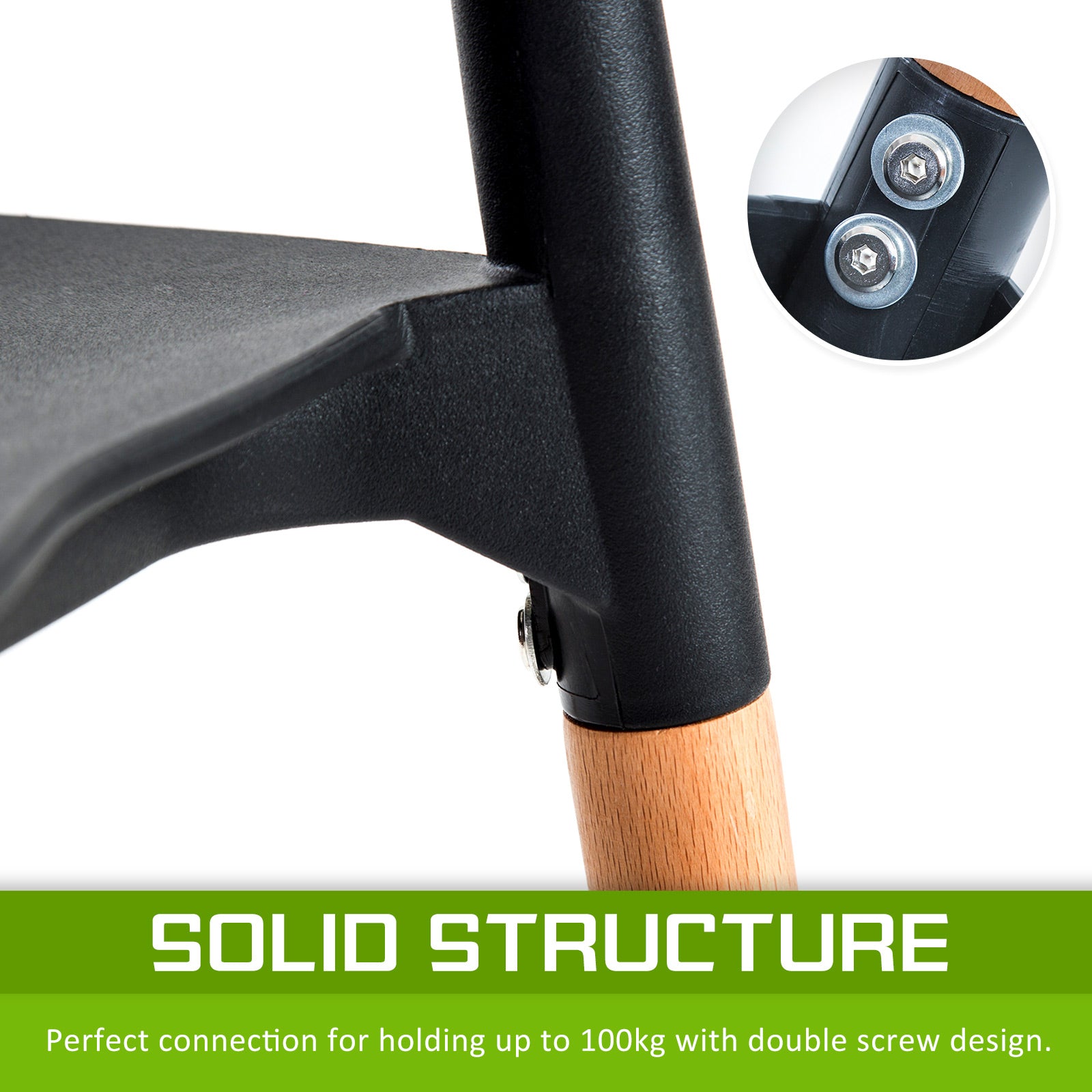 The chair seat is made of high-quality polypropylene plastic, providing maximum durability and comfort without sacrificing its original aesthetic design. Besides, the beech wooden legs will add extra strength to the chair, giving it an extra stability.