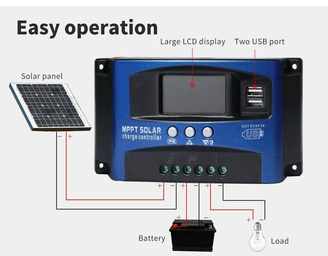 Our Solar Charge Controller is designed to provide maximum power efficiency. Equipped with multiple intelligent ports such as solar panel connection, battery point, load connectors and USB connection. Smart detection recognizes battery specification for efficient output. The output power can be adjusted to meet the power requirement of various lead battery models.