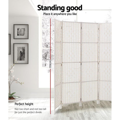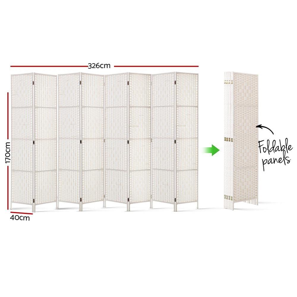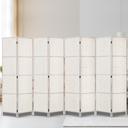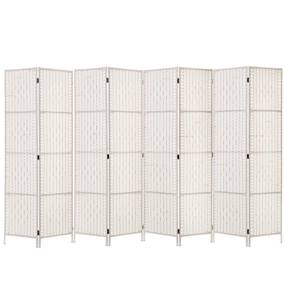 8 Panels Room Divider Screen Privacy Rattan Timber Fold Woven Stand White