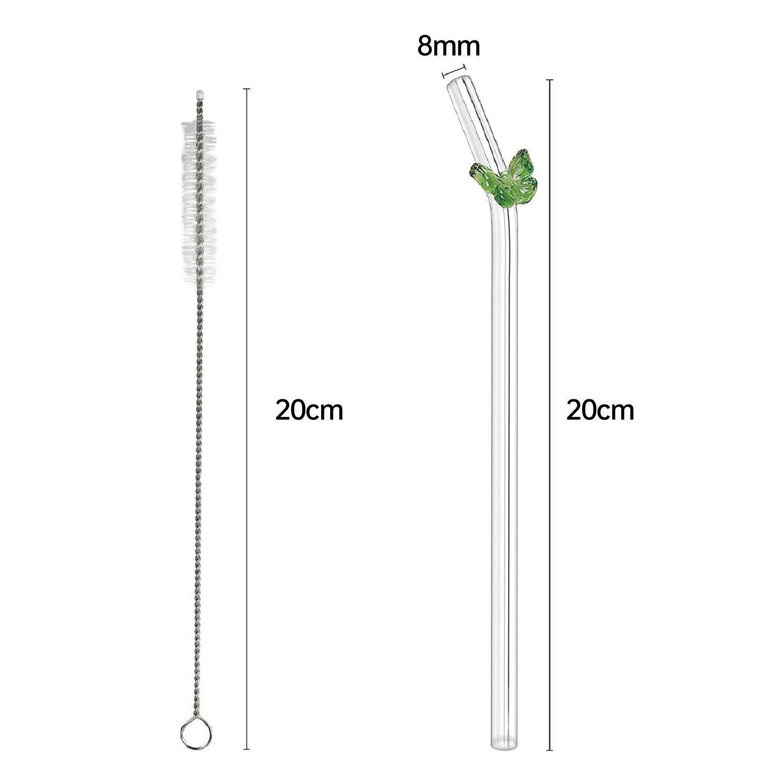 8pcs Colourful Butterfly Glass Straw Reusable Heat Resistant Proof MultiColours