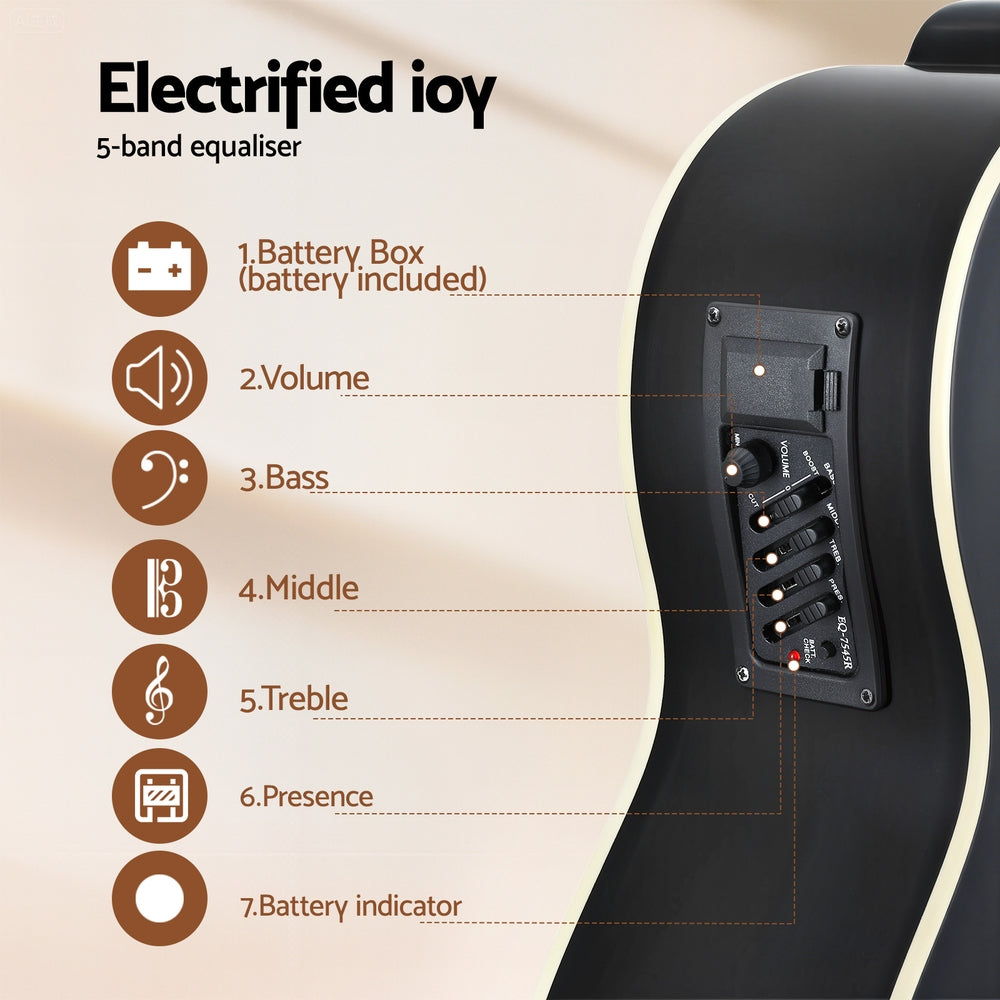 Alpha 43" Acoustic Bass Guitar Black 4-Band EQ