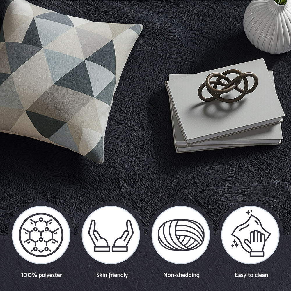 Artiss Floor Rug 160x230cm Plush Area Shaggy Rug Living Room Bedroom Carpet Black