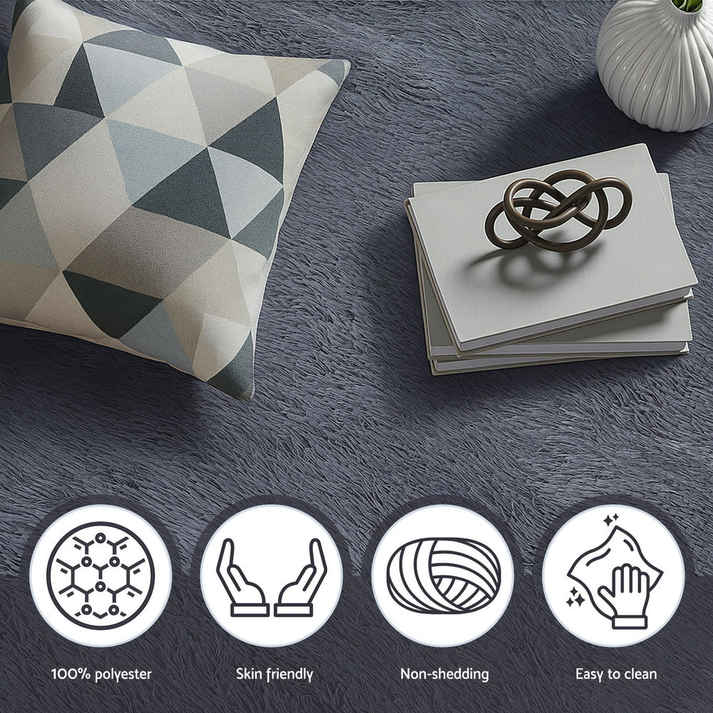 Artiss Floor Rug 200x230cm Plush Area Shaggy Rug Living Room Bedroom Carpet Grey