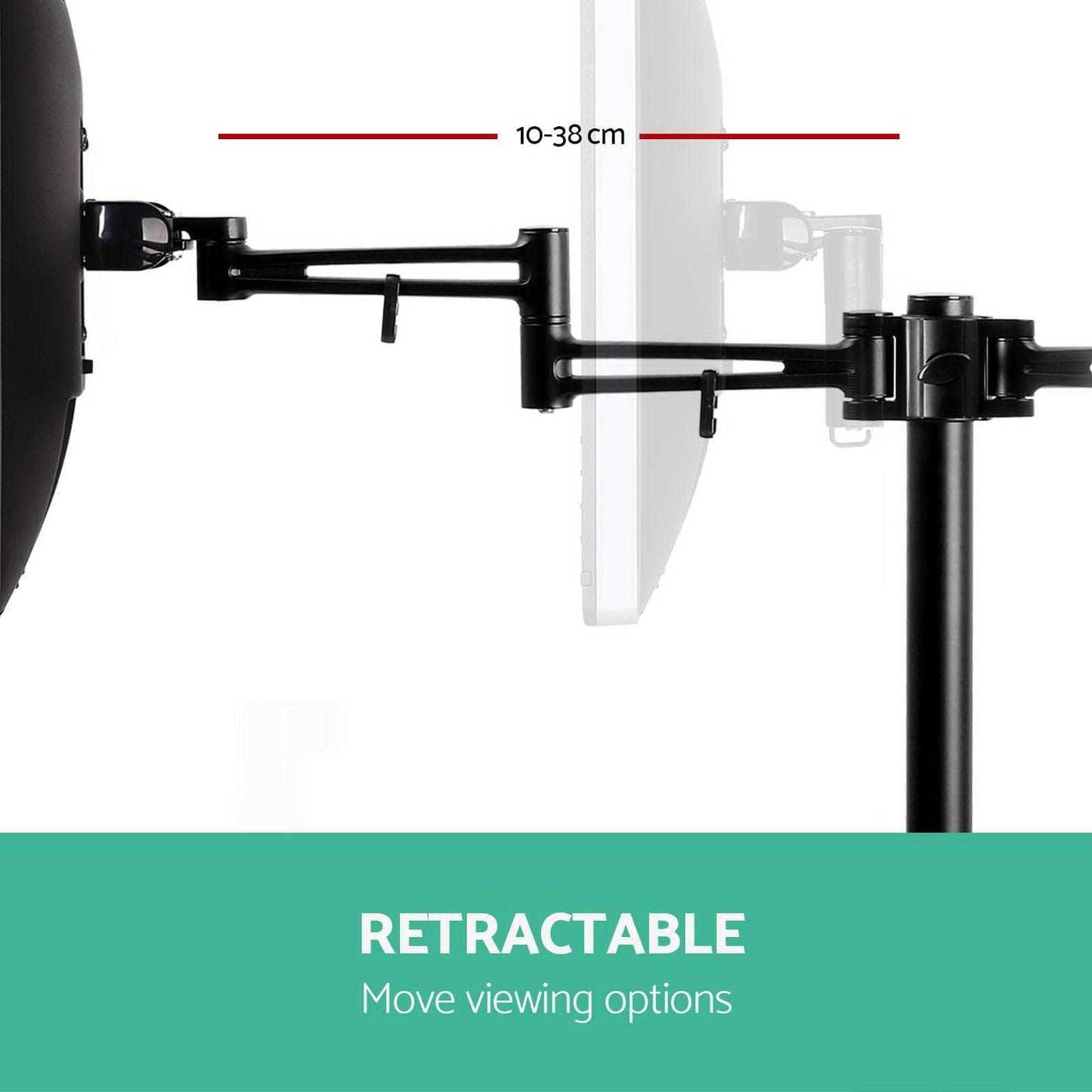 With it, you can mount two monitors on one arm not only for efficiency but also add some panache to your work desk. You can extend each monitor up to 38cm to set your preferred viewing position and retract them with ease. Height adjustments can be easily done using the height adjustment knob. It also allows you to swivel your monitors 360° and set in either landscape or portrait format.