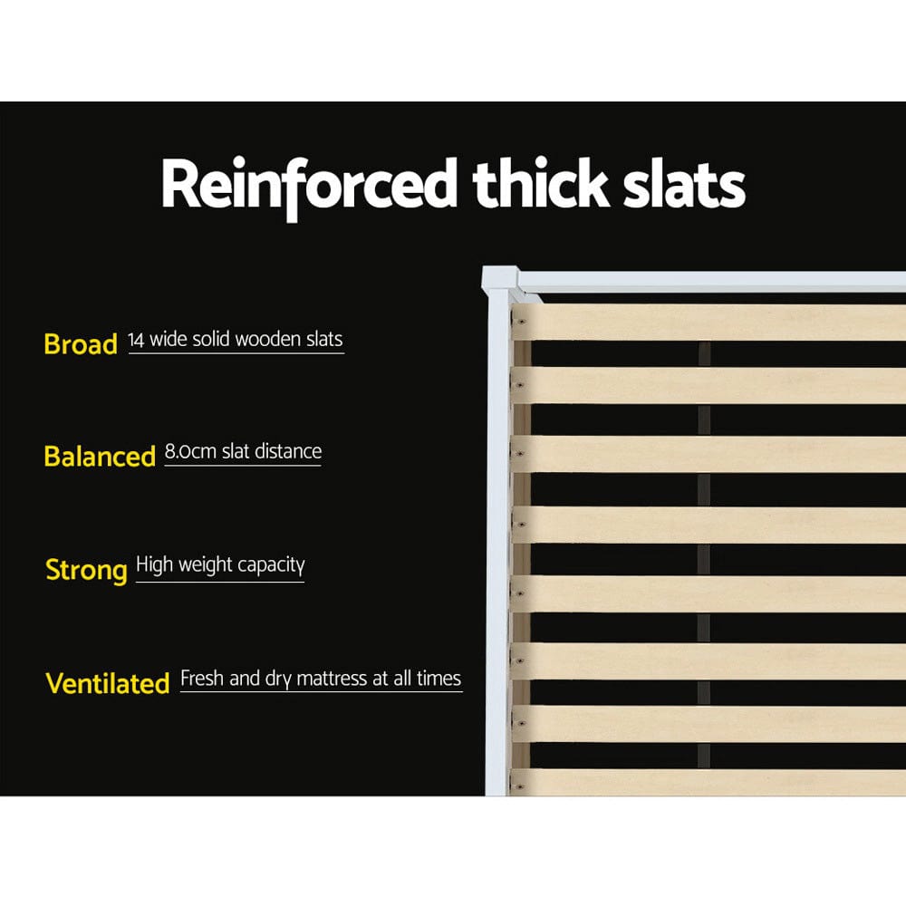 Artiss Wooden Bed Frame Single Size Mattress Base Pine Timber Platform White HOLY