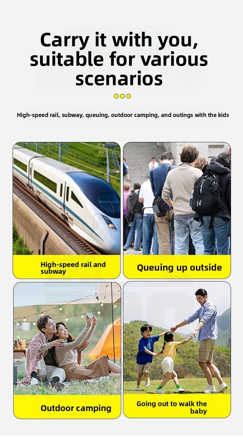 This popular folding stool is the ultimate travel companion, combining lightweight design with sturdy support. Ideal for fishing, camping, hiking, or any outdoor event, its stable X-shaped carbon steel structure ensures reliability. It folds compactly into a handbag style with a shoulder strap for easy transport, and features dual-layer internal and external storage pockets for carrying essentials like phones or small tools.