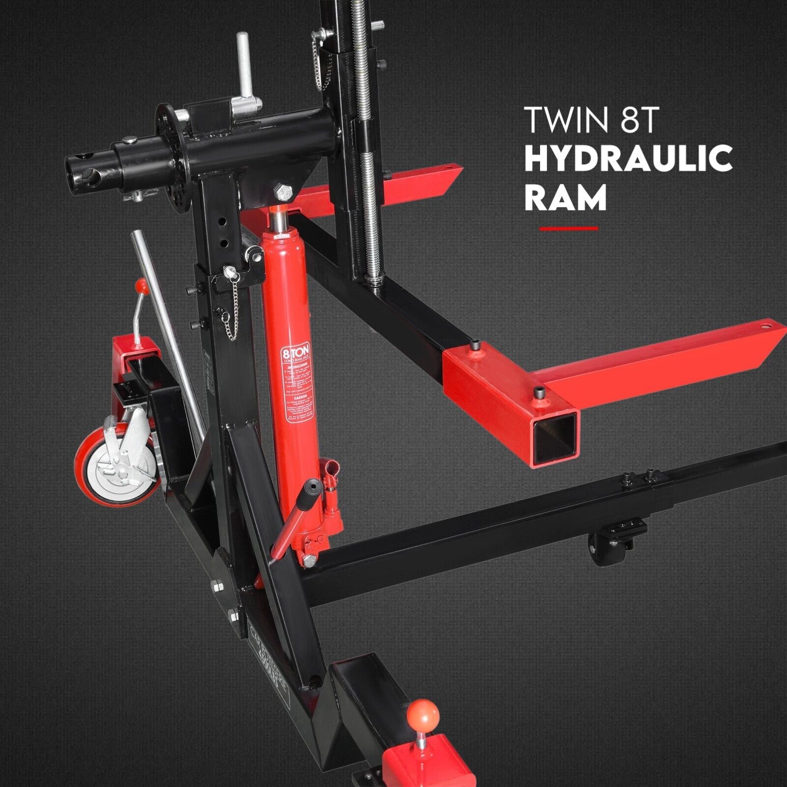 - Dual 8T hydraulic cylinders raise and lower the lifting cradles