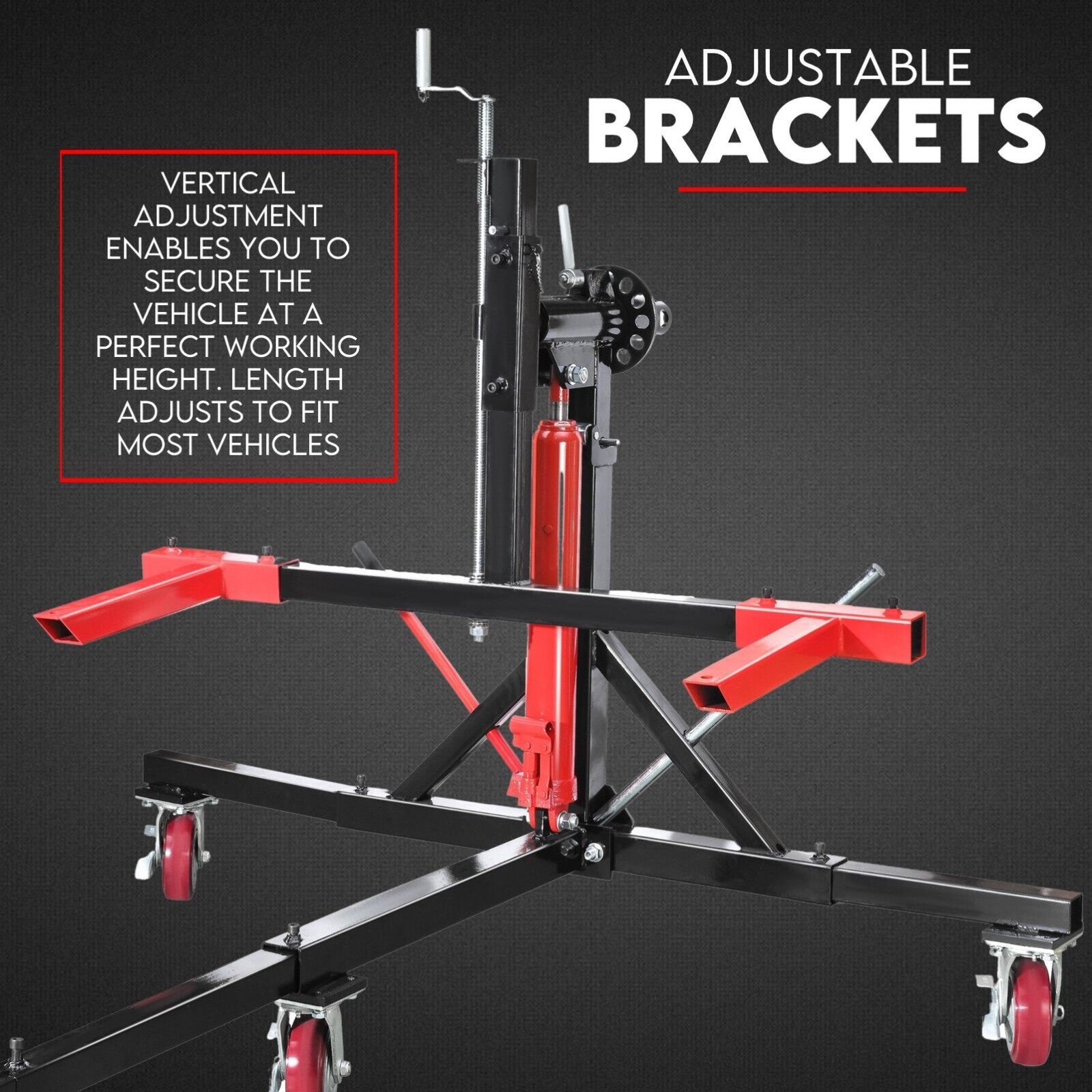 This 2000 lb. capacity rotisserie is a cost-effective solution that keeps your work smart. It features dual hydraulic cylinders that lift the lifting framework to the desired working height for those unreachable areas. In addition, it has a resistant powder coat finish to prevent rust and four locking casters from keeping your rotisserie stable while you work.