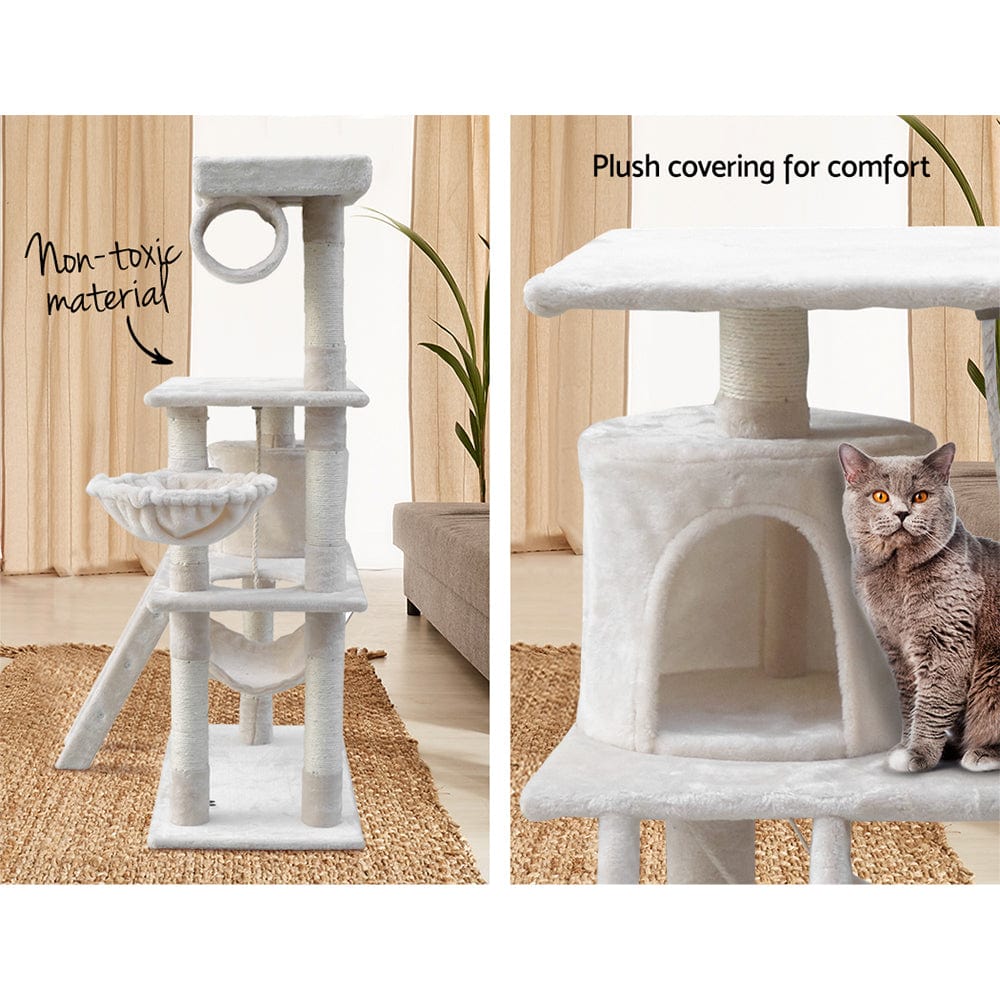 Cat Tree 141cm Trees Scratching Post Scratcher Tower Condo House Furniture Wood Beige