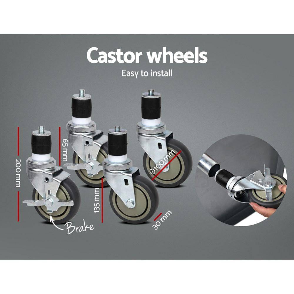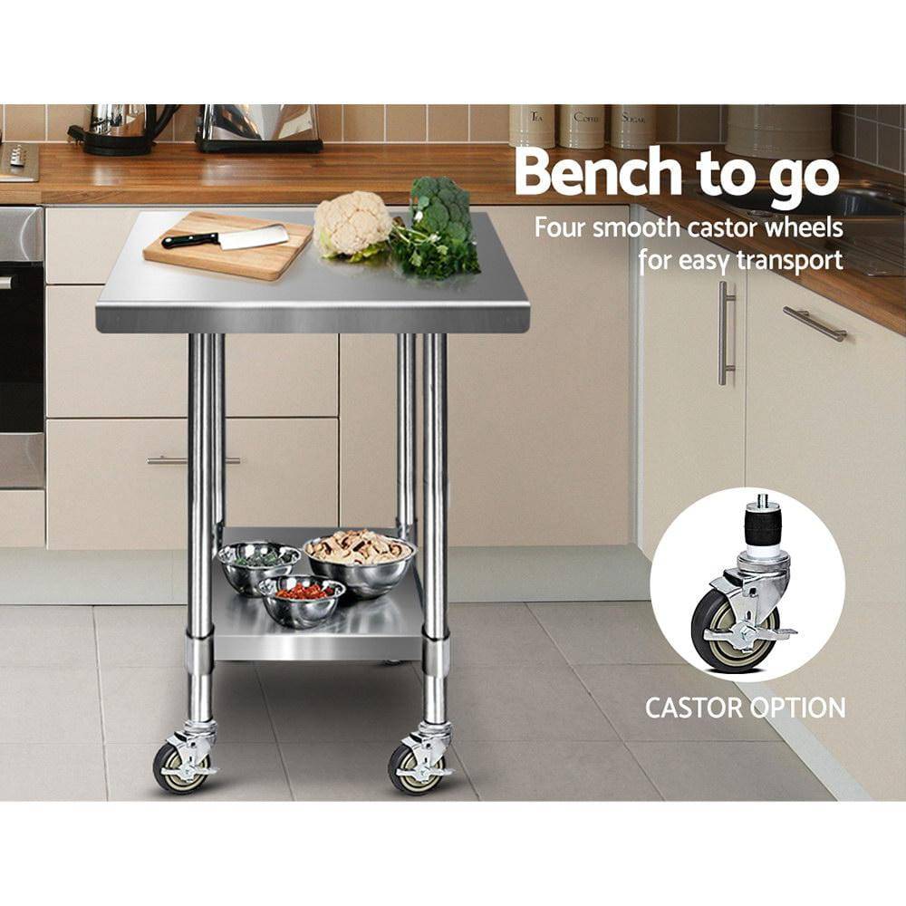 Cefito 762 x 762mm Commercial Stainless Steel Kitchen Bench with 4pcs Castor Wheels