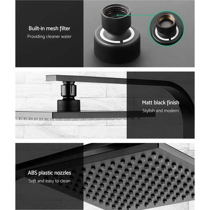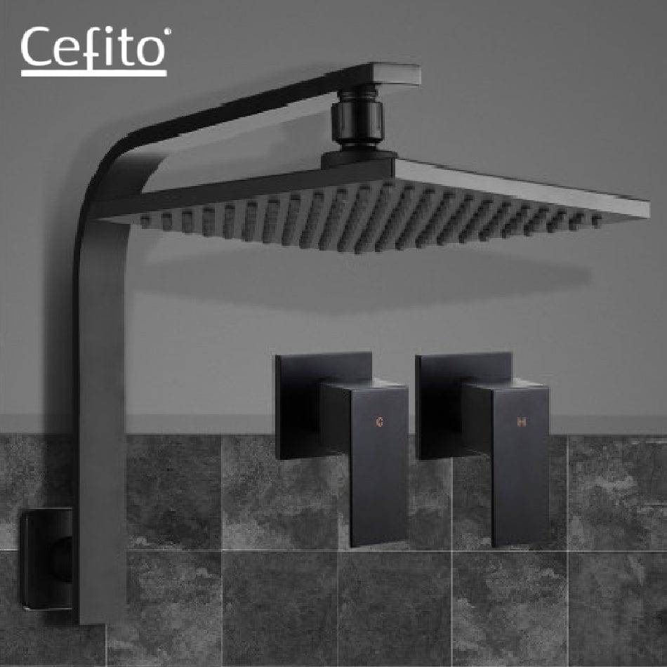 Cefito WElS 8'' Rain Shower Head Taps Square High Pressure Wall Arm DIY Black