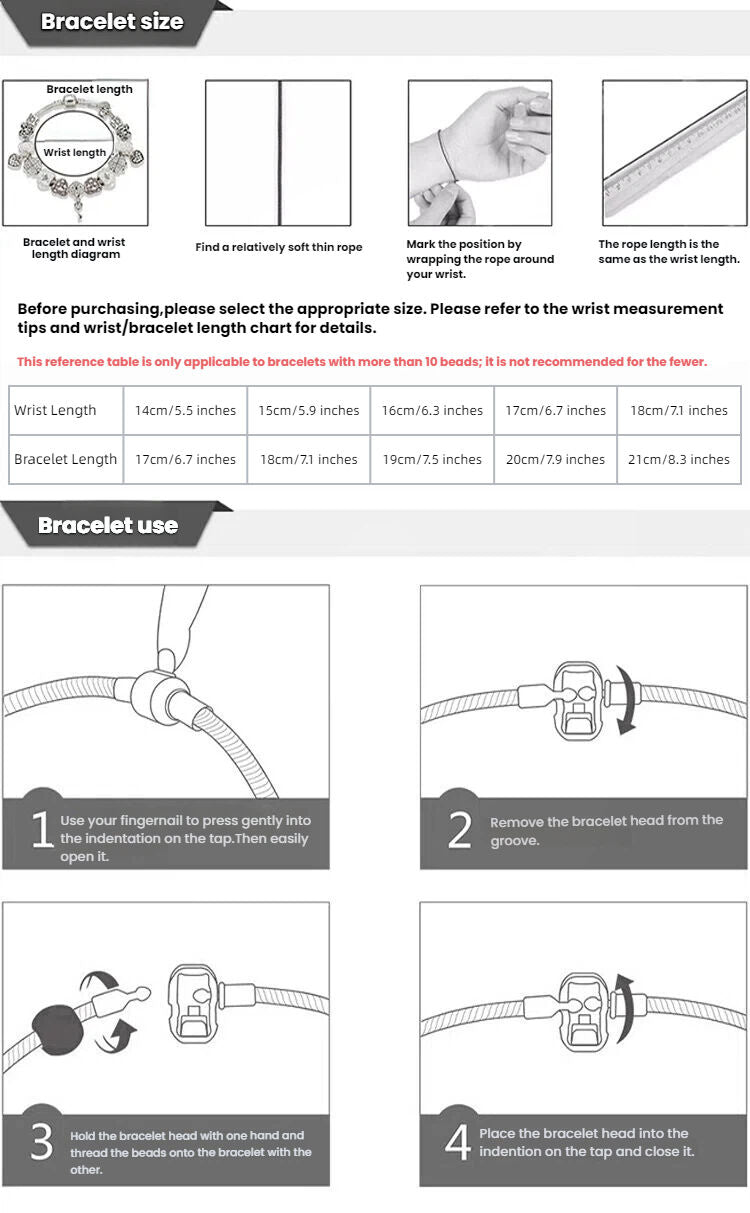 1. Avoid Chemicals: Keep away from perfumes, lotions, and other chemicals to prevent damage to the electroplating. 2. Proper Storage: Store in a dry and cool place, preferably in a jewelry box, to avoid tarnishing. 3. Gentle Cleaning: Use a soft cloth to wipe the bracelet when dirty; do not use abrasive materials. 4. Wear with Care: Avoid excessive pulling or bending to prevent deformation of the chain or beads. 5. Size Selection: Measure your wrist accurately before purchasing to choose the right length for a comfortable fit. |