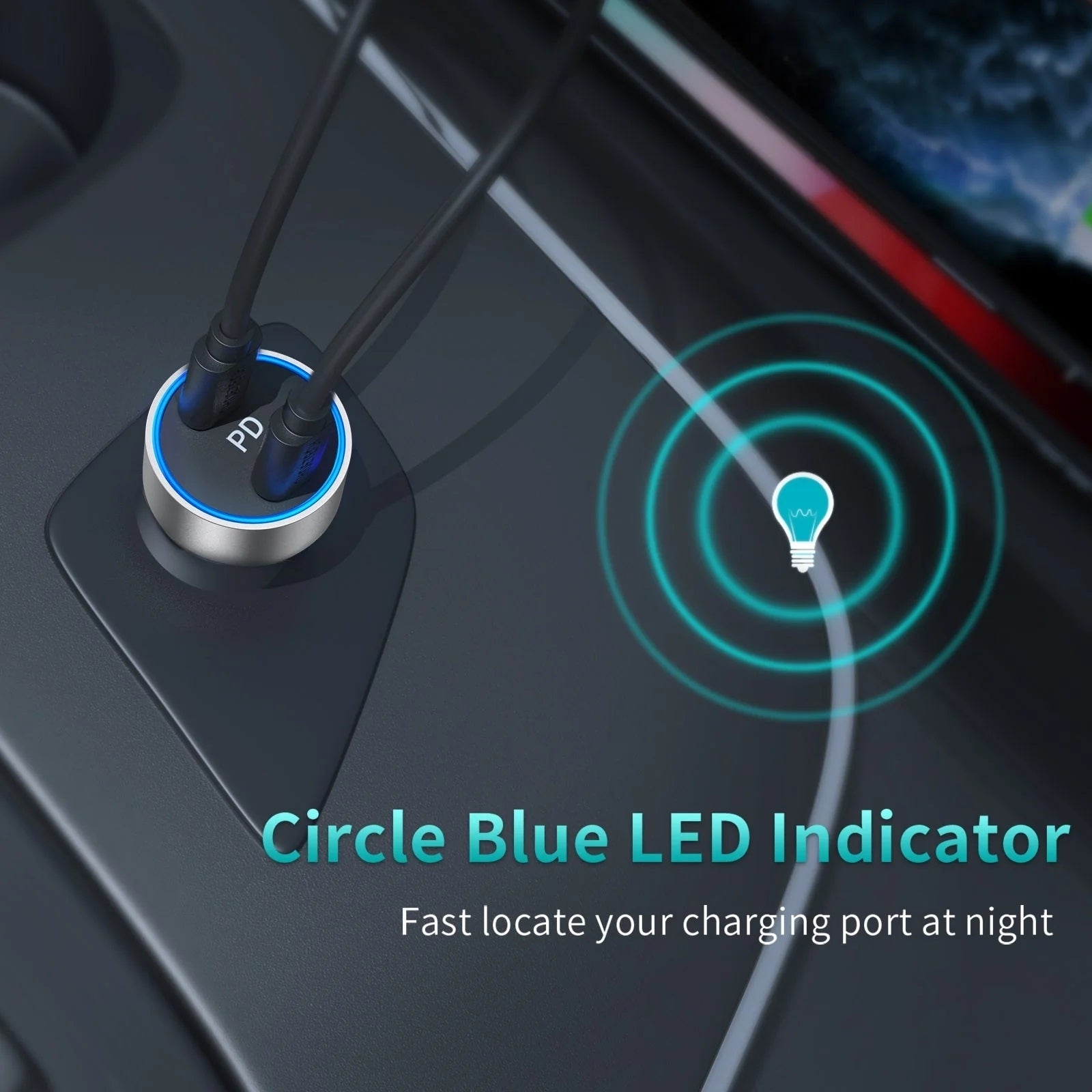 CHOETECH C0054-SL Dual Port PD 40W USB-C Car Charger Adapter Silver
