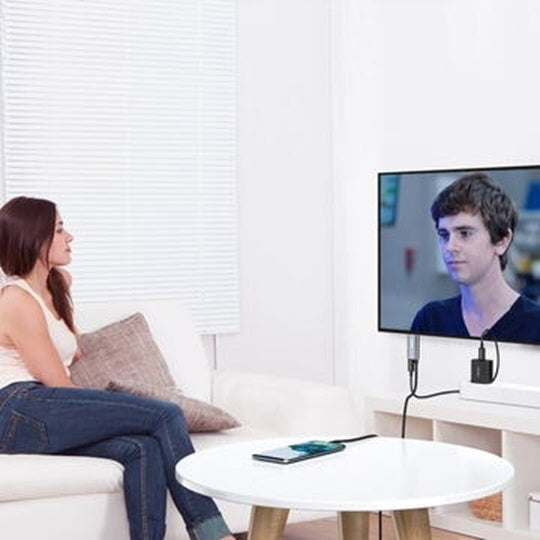 Choetech USB C to HDMI cable equipped with a Power Delivery input port, so you can connect a 60W wall charger to the Power Delivery input port to provide high-speed pass-through charging to your laptop. USB Type C to HDMI cable makes it easy to mirror or extend your device's screen and enjoy 4K UHD or Full HD 1080p videos on HDTV, secondary monitors, or even projectors from your laptop and phone.