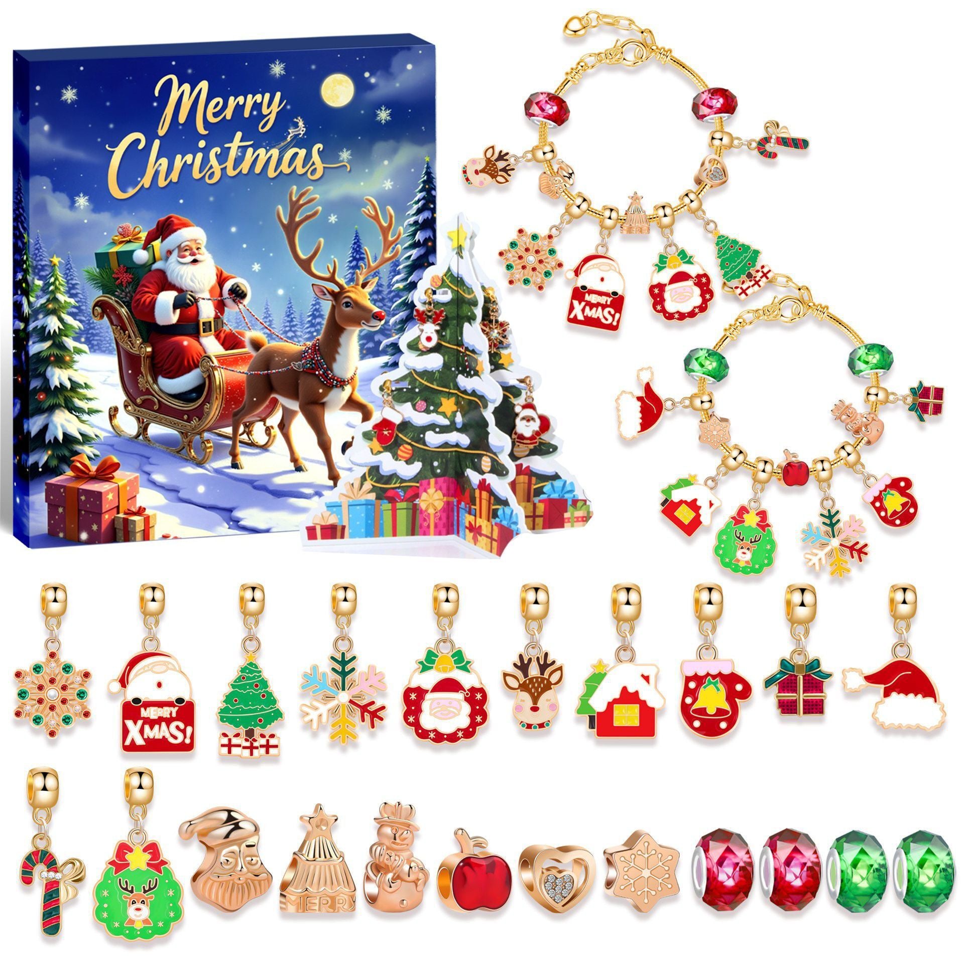 Christmas DIY Jewelry Craft Advent Calendar for Kids - Fun Festive Toys with Santa, Tree More |