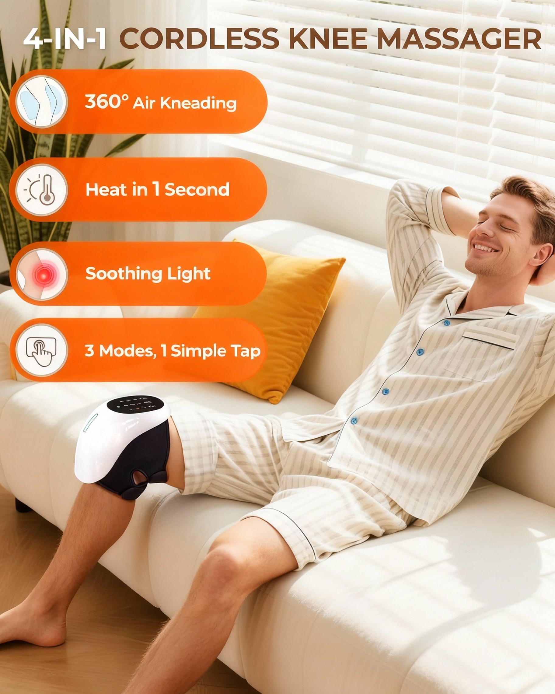 Cordless 360° Knee Massager: 3 Intensity Levels, Comfortable Wrap Design for Athletes, Seniors & Active Adults