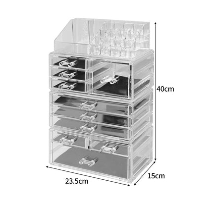 Cosmetic 10 Drawer Makeup Organizer Storage Jewellery Holder Box Acrylic Display