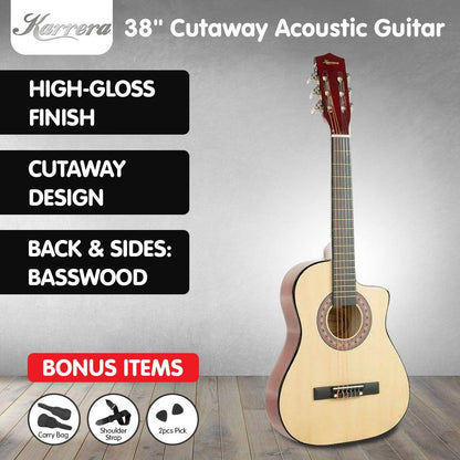 Cutaway Acoustic Guitar with guitar bag - Natural 38in