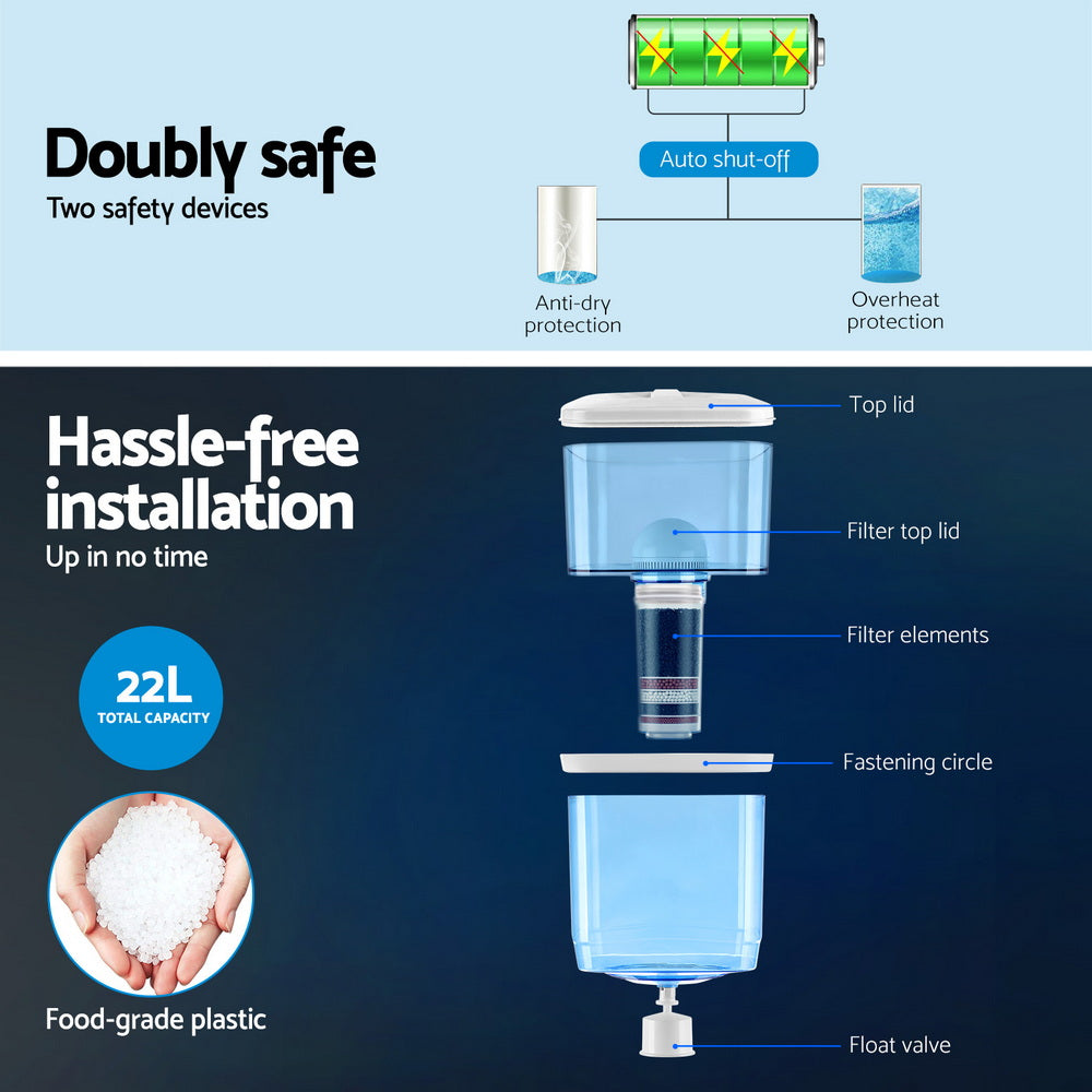 Devanti Water Cooler Dispenser Bench Top 22L w/2 Filter