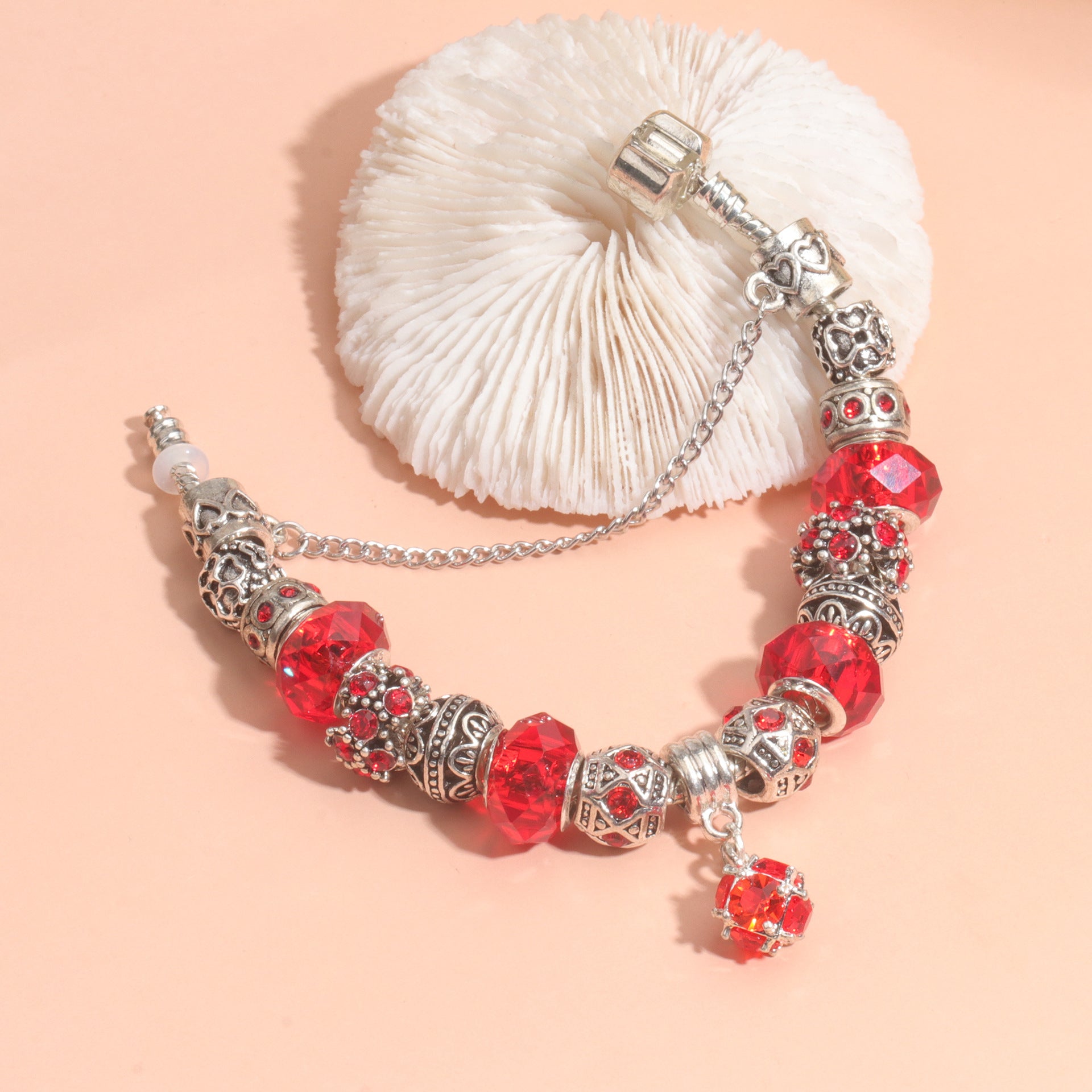 Ethnic Crystal Bead DIY Bracelet Red Alloy Electroplated Big Bead Bracelet(18cm)