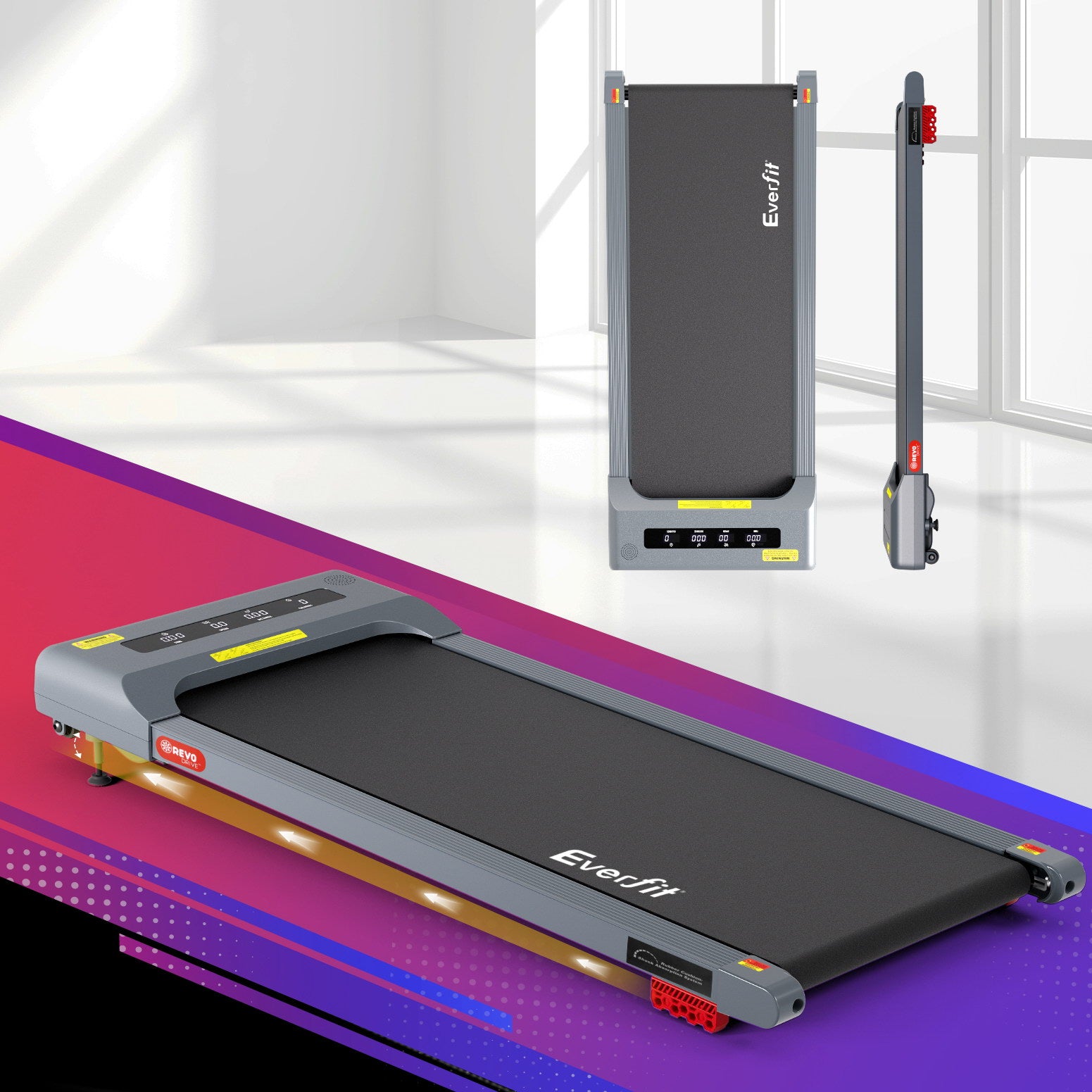 Upgrade your WFH setup with the Everfit Compact Walking Pad - your smart solution for staying active while working or relaxing. This space-savvy treadmill arrives fully assembled and glides smoothly into any home office, sliding neatly under desks when not in use. Experience comfortable walking with three adjustable incline levels and whisper-quiet motor technology. The innovative honeycomb shock absorption cushions every stride while the extra-wide surface keeps you stable during calls or streaming sessions.