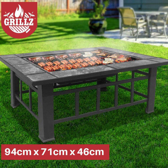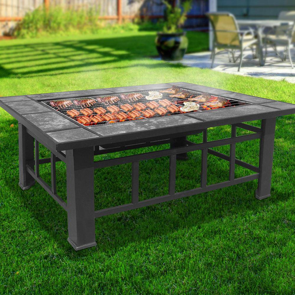 Fire Pit BBQ Grill Stove Table Ice Pits Patio Fireplace Heater 3 IN 1 94 x 71 x 46cm