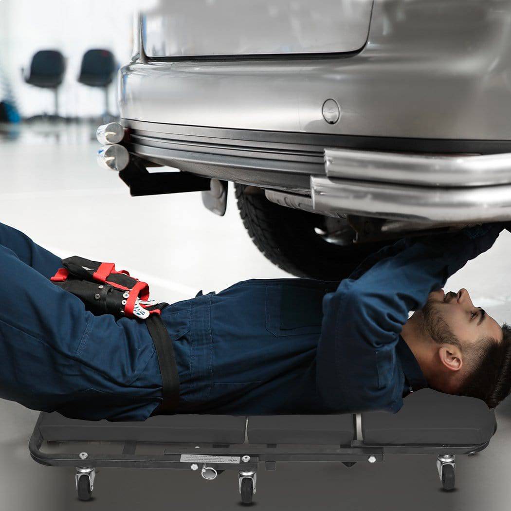 This garage creeper is made of high-quality steel and PU material. Its steel construction provides excellent resistance towards rust and corrosion. Retrofitted with reinforced stainless-steel screws for added stability and robustness. The entire structure is supported with powder-coated tubular steel beams make for a surface that can steady and still all the time. Built very light in weight, just fold it up and store it when not in use.